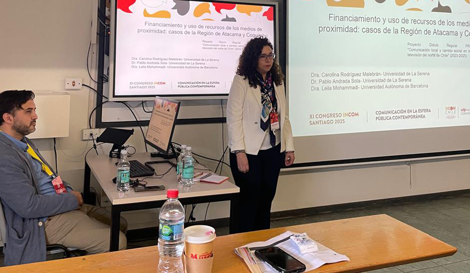 En el eje “Regulación, ética y políticas públicas”, los académicos Dr. Pablo Andrada Sola y Dra. Carolina Rodríguez Malebrán, presentaron la investigación “Financiamiento y uso de recursos de los medios de proximidad: casos de la Región de Atacama y Coquimbo”, estudio realizado junto a la Dra. Leila Mohammadi, de la Universidad Autónoma de Barcelona, España. Este estudio es parte del Proyecto Diduls Regular "Comunicación local y cambio social en la radio y televisión del norte de Chile", cuya investigadora responsable es la Dra. Rodríguez.